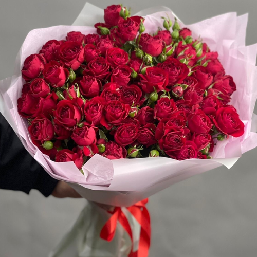 Букет из 17 красных кустовых пионовидных роз (50 см)